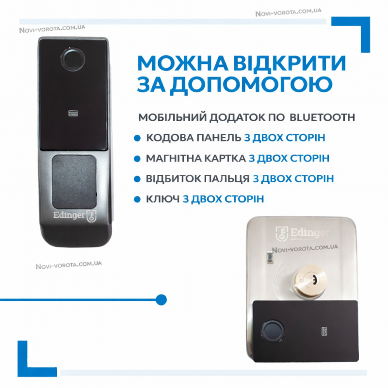 Отже, Edinger Smart LUX має такі способи розблокування з обох сторін: