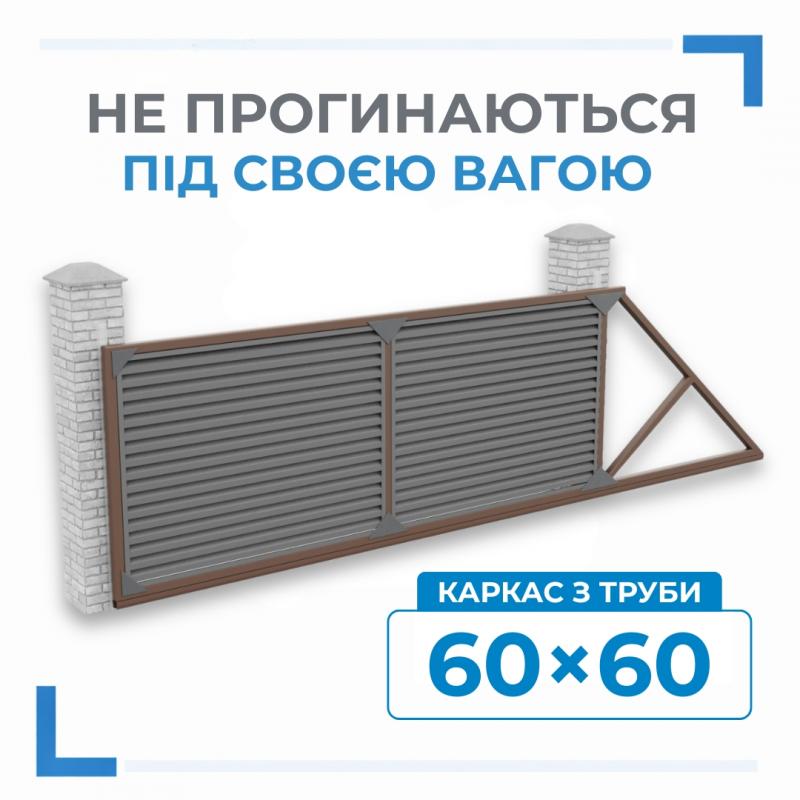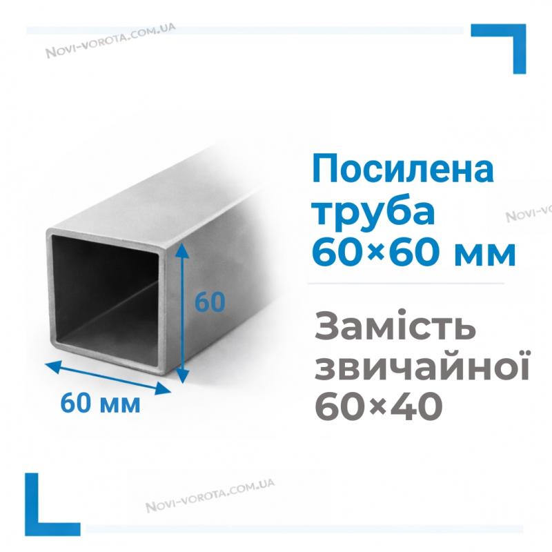 Більшість виробників використовують 60×40 — бо це дешевше. Ми свідомо обрали 60×60 — бо ворота мають служити десятиліттями.