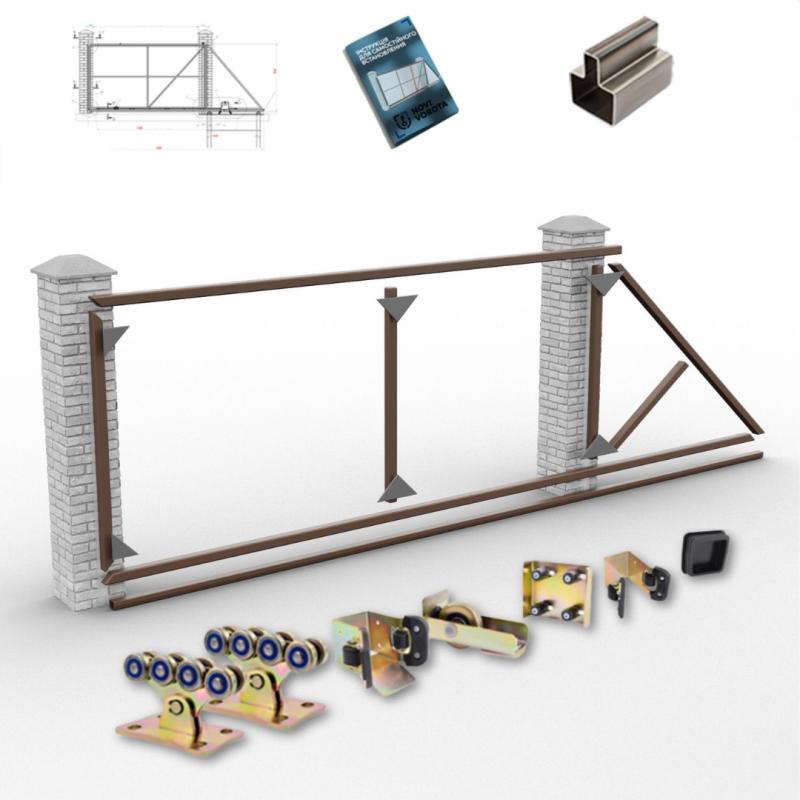 — Комплект фурнітури для відкатних воріт на вибір (направляюча, ролики, уловлювачі, обмежувачі)