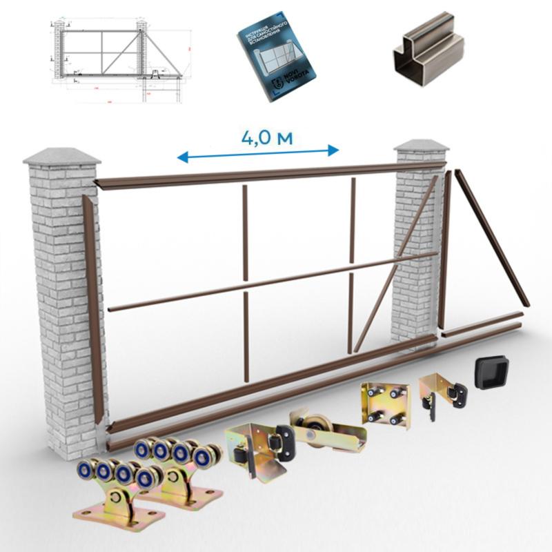 Комплект "Свари сам" - это полный набор компонентов для самостоятельной сборки откатных ворот из Т-профиля, который требует только сварки.